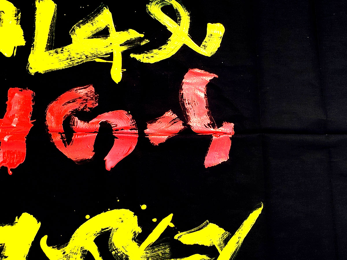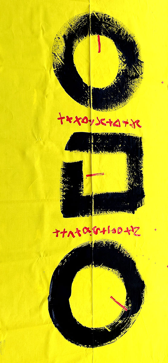 A slow drip to a fluid movement that seems to swing through the beams of light, followed by a rapid flutter of feather-like strokes stirring through misty shadows. The trickle of red leaving a faint trail. The ink seems to lead of its own accord in contemplated minimalist deliberations, reflecting upon the space, the light, the existence and the inexplicable sensations coursing through the viewer. Is this a new language, an unscripted dialogue where the Artist and the Public feel connected to a freedom that is coursing through our very veins?